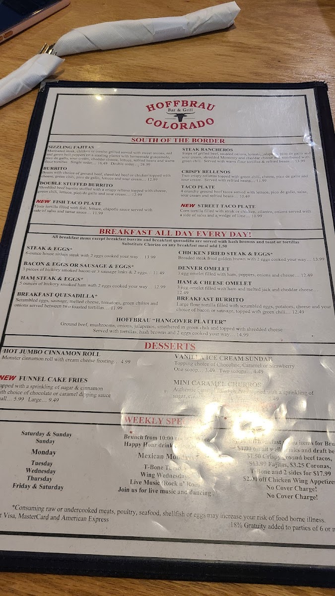 Hoffbrau Menu